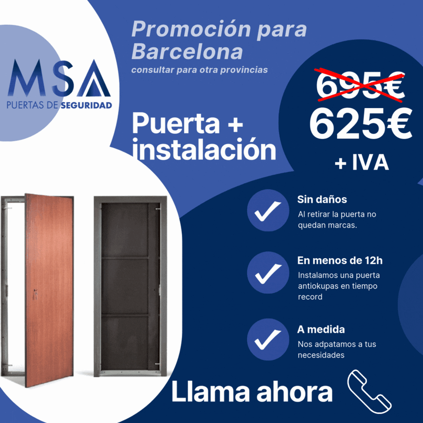 - Sistema a presión retiramos puerta privativa i realizamos anclaje a presion por dentro de la vivienda, con lo cual no dejamos ningún daño a la hora de retirar.